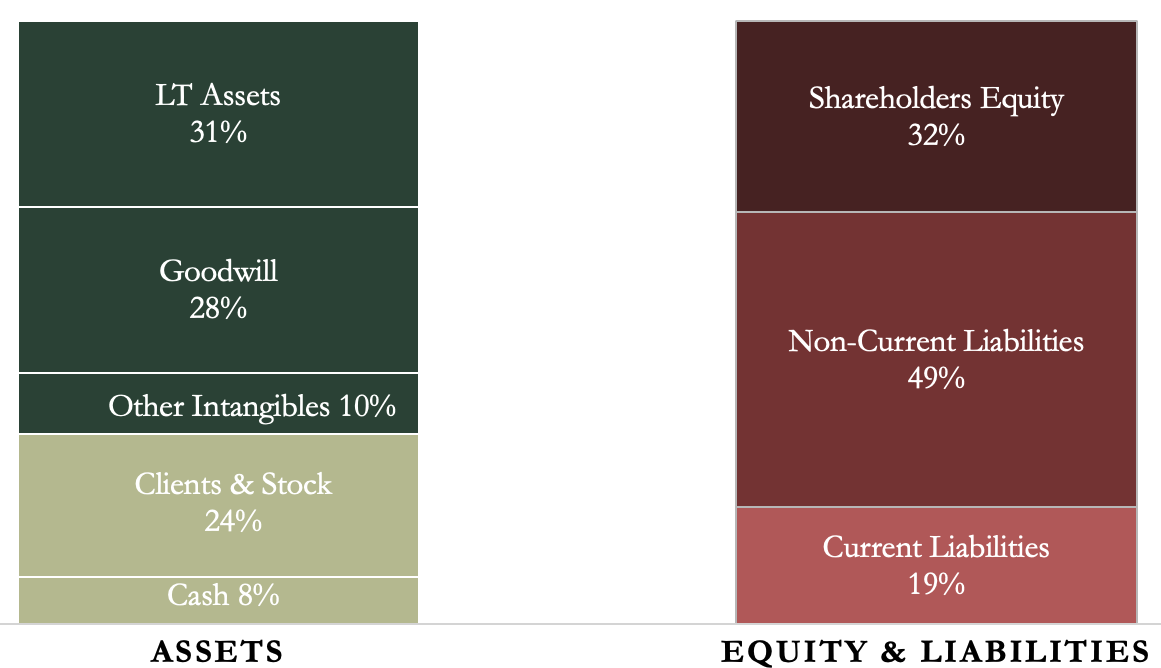 En el largo plazo, la situación es correcta pero no es tan idónea. Aunque se están reduciendo los últimos años, los Intangibles son bastante elevados y sólo el Goodwill representa alrededor del 28%. Estos activos ficticios superan el valor del Patrimonio Neto. Si los descontásemos del Balance (ya que no contribuyen a la actividad, y  representan únicamente sobrecoste pagado por adquisiciones), la Autonomía Financiera sería únicamente el 4%.