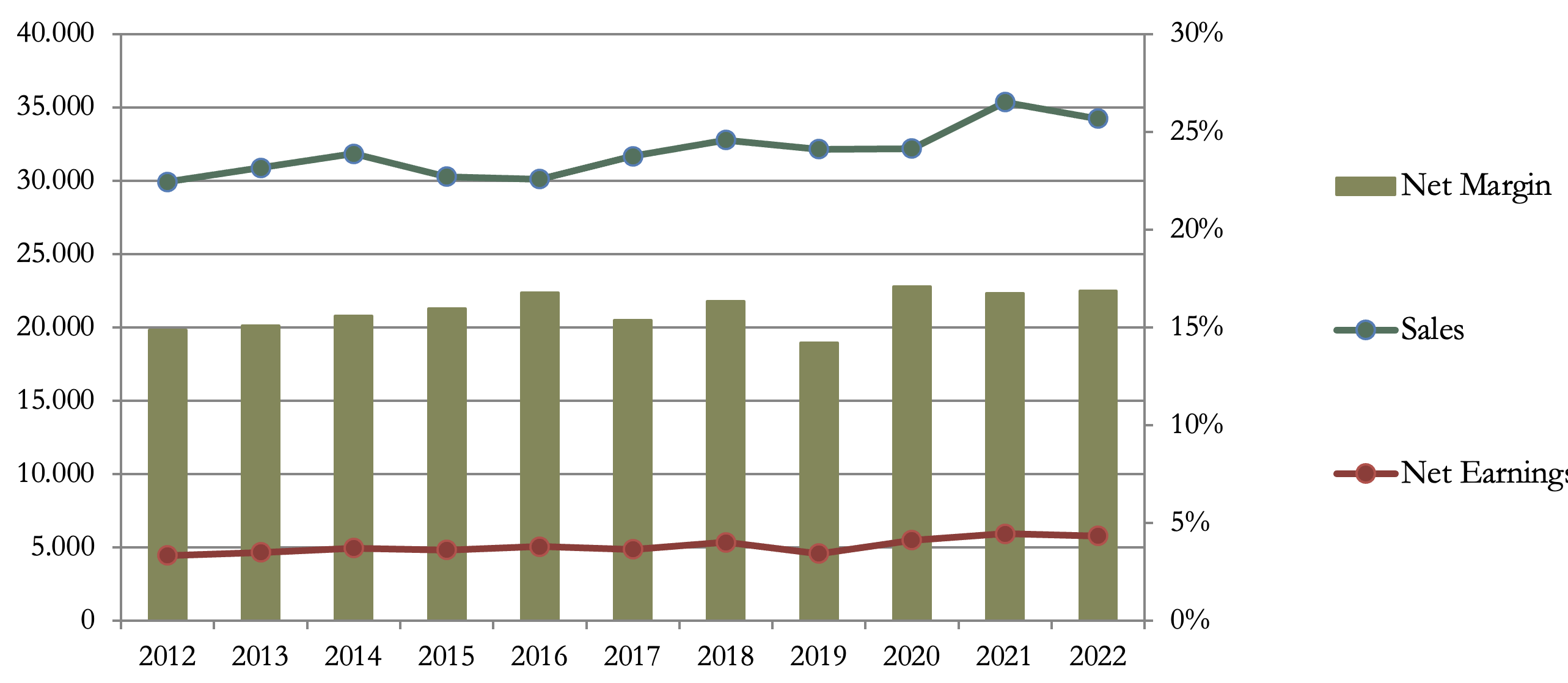 El Margen Neto alcanzó un 17% durante los 3 últimos ejercicios analizados, y es un valor bastante elevado.