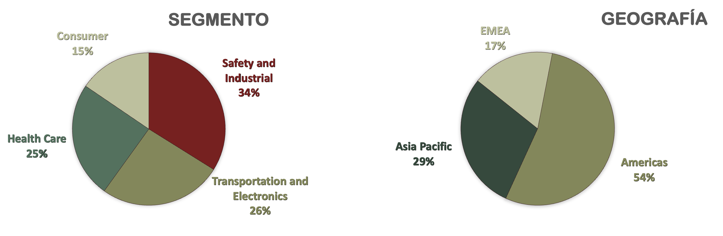Podemos observar una gran diversificación, y si hay algo que diferencia a la compañía, es su innovación tecnológica y la alta calidad de sus productos. De la misma manera, las ventas se encuentran repartidas por todo el mundo, aunque el conjunto de Américas y Asia Pacífico representa el 73% de las mismas en 2022. También es curioso ver que la sección de Consumer, en la que se engloban sus famosos Post-it y la marca Scotch-Brite, es el segmento de negocio que menos ventas representa para la compañía.
