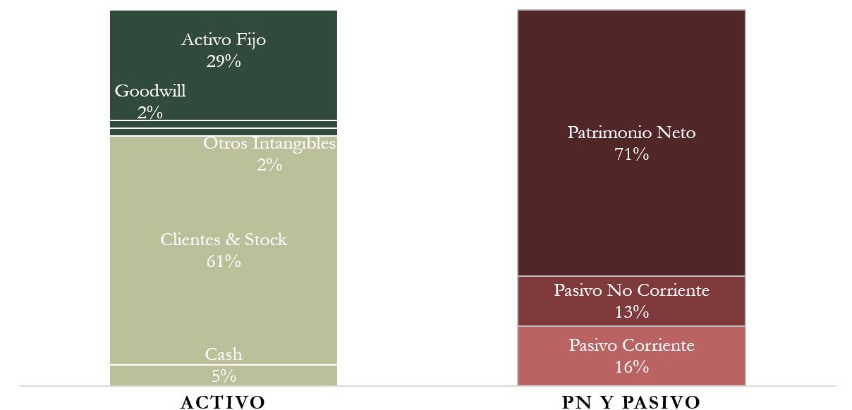 Su Balance es impecable, con un gran peso de su Inventario, y práctica ausencia de Goodwill, Intangibles y Deuda Financiera.