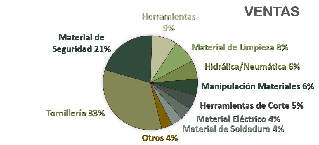 - Otros Productos: En esta categoría se incluye todos los productos que no tienen que ver con los dos anteriores, como herramientas de corte, equipos y material de limpieza, material eléctrico, de soldadura…