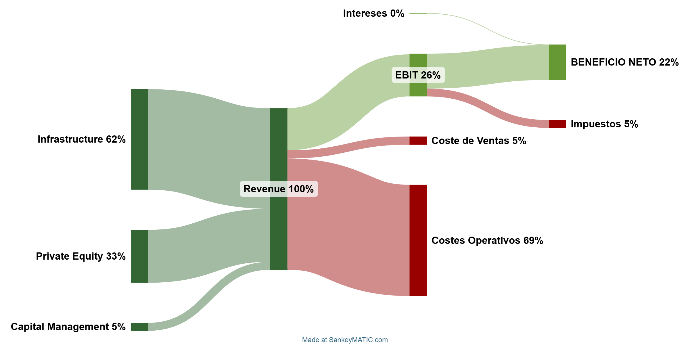 Sin embargo, el EBITDA de la compañía ha crecido mucho en buena parte gracias a la división de Private Equity. El segmento de Private Equity aporta rentabilidad, mientras que la división de Infraestructuras aporta estabilidad y predictibilidad.