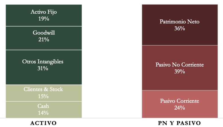 La estructura del Balance es correcta: buena relación de corrientes, Deuda conservadora y una alta Autonomía Financiera. En cambio, el Goodwill (Activos de dudoso valor) tiene un peso importante debido a sus continuas adquisiciones.