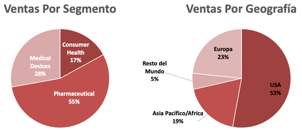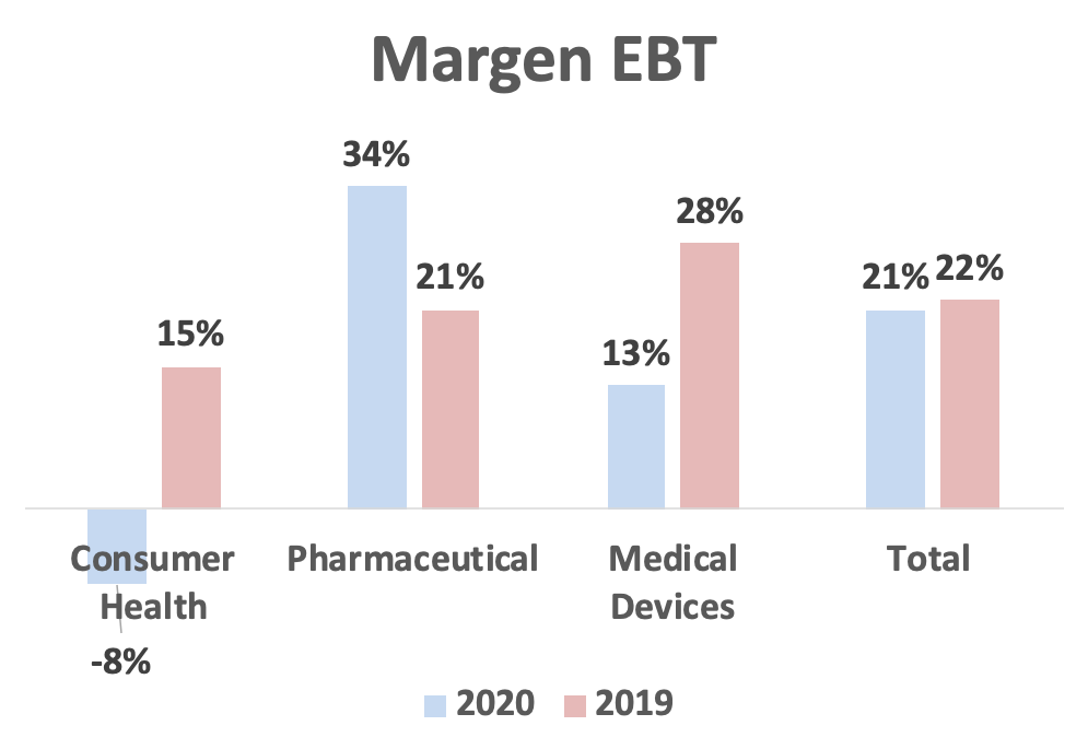 Tanto el año de pandemia como estos litigios distorsionan los márgenes por segmentos, pero en general cuentan con márgenes altos, destacando Pharmaceutical y Medical Devices.