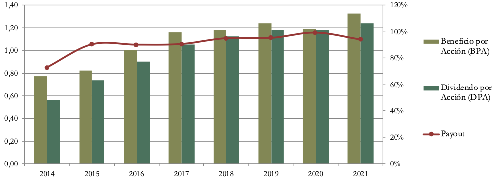 Sin embargo, la Autonomía Financiera es muy reducida y se ha mantenido estable desde que la empresa salió a bolsa en 2014, y es que como veremos a continuación, la empresa reparte prácticamente todos sus beneficios en dividendos.