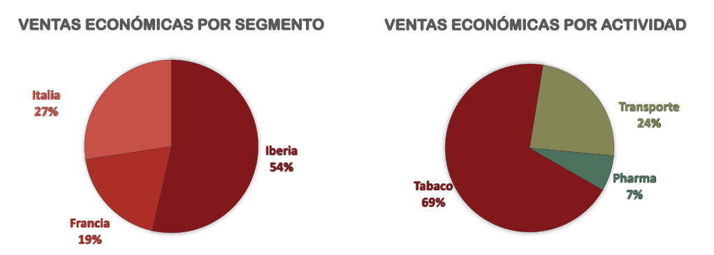 El 69% de las ventas económicas provienen de la Industria del Tabaco, y como veremos más adelante, es la industria más rentable de las que opera. Sin embargo, el consumo va a continuar reduciéndose en los próximos años, y para seguir creciendo necesitará diversificar su actividad en otros sectores como la distribución especializada y farmacéutica. En su Informe Anual no descartan seguir creciendo a través de adquisición de empresas más pequeñas que puedan ser complementarias o sinérgicas para el negocio.