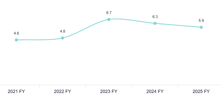 Si nos fijamos en el Margen Neto de LSEG, nos damos cuenta de que existen do etapas bien diferenciadas: antes y después de compra de Refinitiv. Por ello, entre 2015 y 2020 el Margen Neto oscilaba entre el 13% y e 26%, sin duda un Margen Neto muy alto consecuencia de que el grueso del negocio de LSEG centrado en Markets es muy rentable. Pero a partir de 2021, el Margen Neto ha oscilado entre el 7% y el 13%, un Margen mucho más reducido que nos hace pensar que esta adquisición ha mermado mucho la rentabilidad global de la compañía.