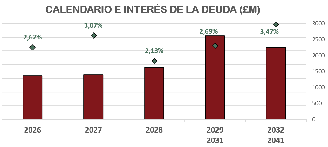 La Deuda Neta de la compañía representa apenas 1,70 veces el EBITDA. No es una Deuda demasiado elevada, pero sí que parece algo abultada para una empresa financiera. Históricamente la LSEG ha tenido una Deuda Neta muy controlada (o incluso negativa algunos años), hasta la adquisición de Refinitiv en 2021, cuando se disparó a 1,69 veces EBITDA y se ha mantenido en esos niveles desde entonces. La parte positiva de esta deuda es principalmente mediante bonos, que tiene un tipo de interés medio bastante reducido (2,83%) y que su calendario está correctamente escalonado en el tiempo: