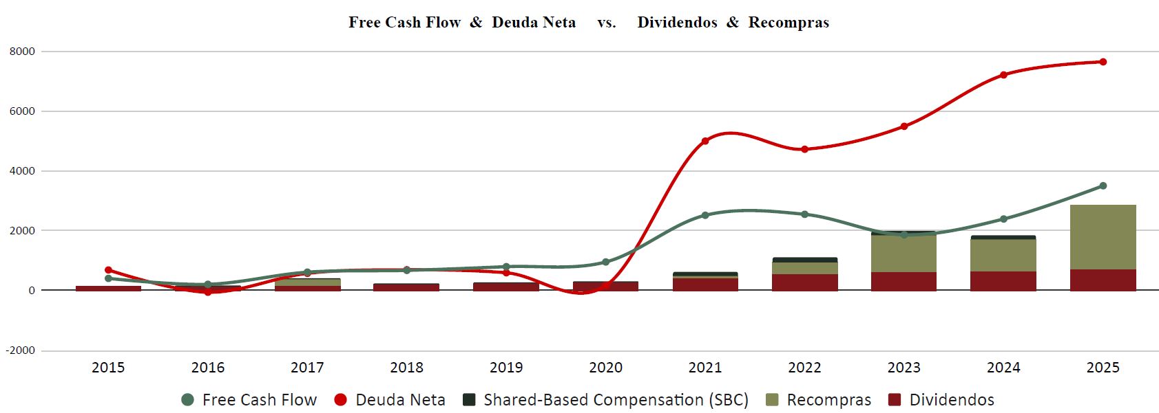 Pero lo realmente relevante es que los Dividendos apenas representan un 20% del Free Cash Flow, por lo que podemos afirmar que son perfectamente sostenibles.