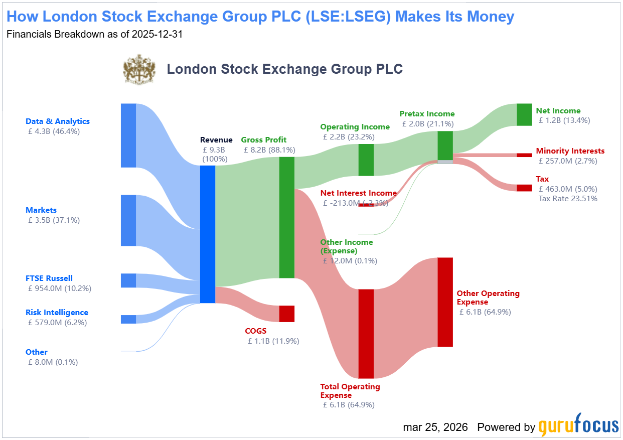 Este es el segmento más grande de la compañía y se centra en proporcionar datos críticos, flujos de trabajo y soluciones de análisis para instituciones financieras. Según la compañía, el 98% de los ingresos totales del Grupo son recurrentes. Sus competidores principales son Bloomberg, S&P Global y FactSet.