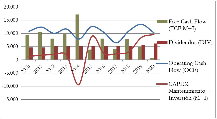1) Cash Flow contando sólo CAPEX de Mantenimiento: