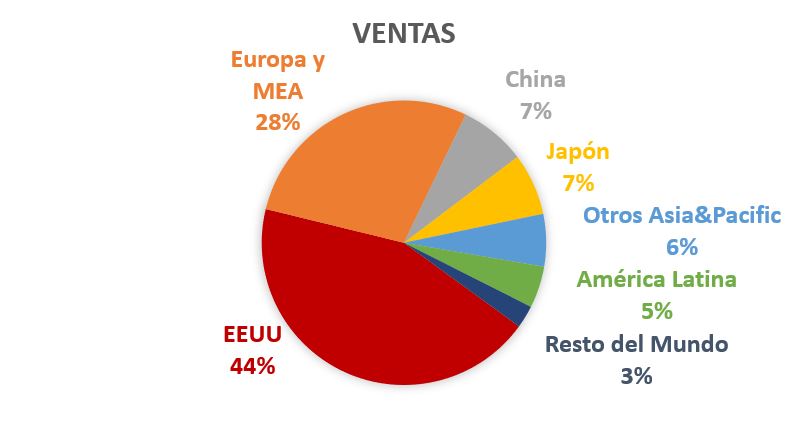 Hoy en día es la 5ª mayor farmacéutica a nivel mundial por ingresos, y 3ª estadounidense sólo por detrás de Johnson&Johnson y Pfizer. Sus Ventas están muy centradas en EEUU (44%), aunque ya más de la mitad de sus Ventas provienen del extranjero y es probablemente donde más pueda crecer. Este año, China y Europa son las regiones que han registrado un mayor crecimiento en Ventas (10% y 13%). EEUU ha mantenido casi planas sus Ventas y el resto de regiones las han disminuido ligeramente.