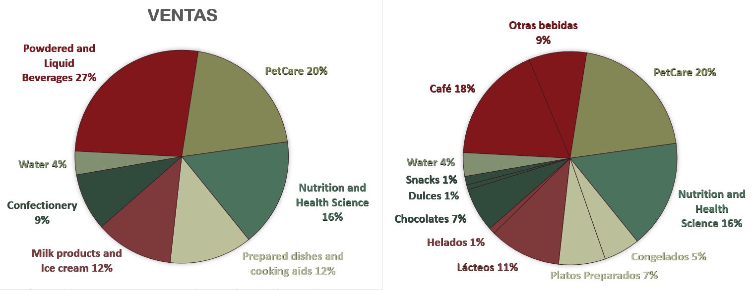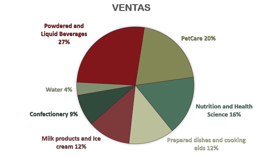 Powdered and Liquid Beverages: En este segmento se incluyen todas las marcas de café como Nespresso, Dolce Gusto o Nescafé, así como otro tipo de bebidas como la de chocolate Milo.