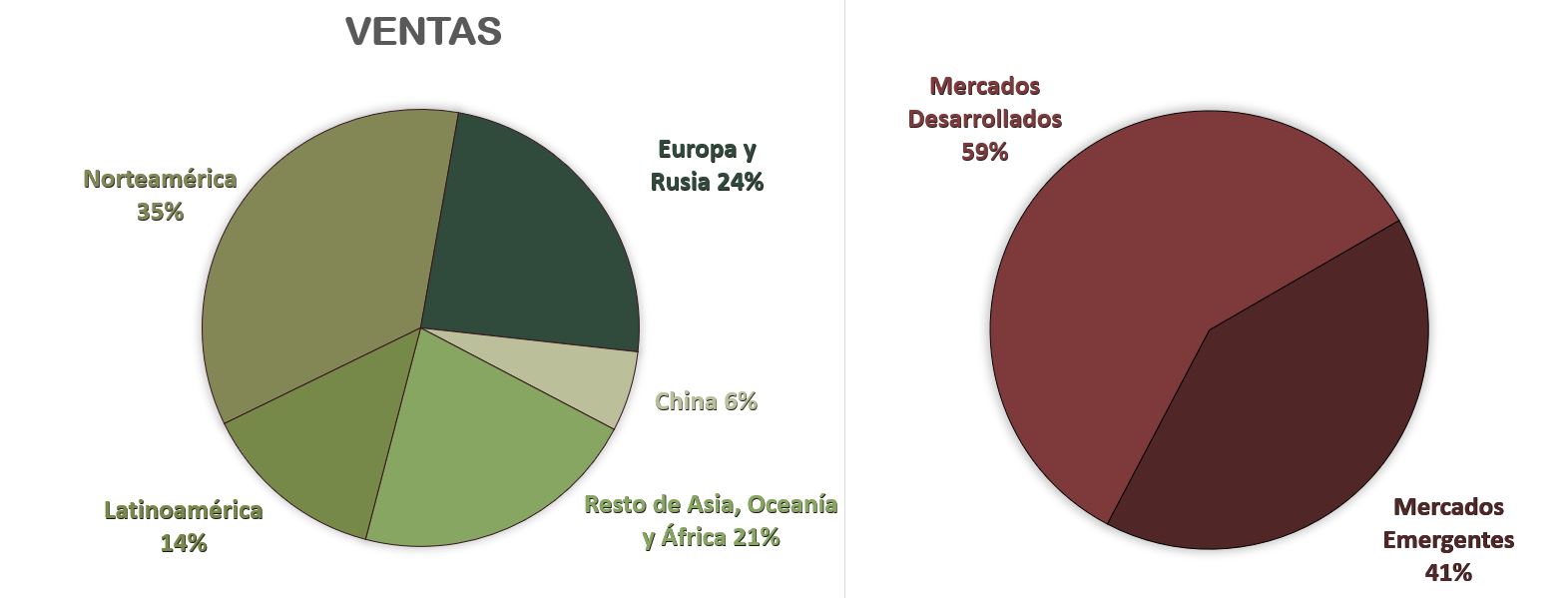 Como apreciamos en el gráfico, los segmentos que más pesan son Powdered and Liquide Beverages (en el que las marcas de café pesan un 67%) y PetCare. Entre ambas suman casi la mitad (47%) de las Ventas de la compañía. Además, el segmento de PetCare es uno de los que más crece interanualmente, con algunas marcas creciendo a doble dígito de forma orgánica, como Purina, Pro Plan o Friskies.