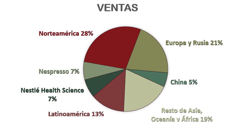 Sin embargo, al tener tal multitud de marcas globales y locales, Nestlé cada año optimiza su portfolio de una forma que dificulta seguir el crecimiento global de cada segmento. Por ello, prefiere reportar las Ventas por zonas geográficas y por negocios gestionados a nivel global: Nespresso y Nestlé Health Science. Estos dos negocios gestionados globalmente representan apenas el 7% de las Ventas cada uno, pero cada uno de ellos tienen características que les distinguen del resto del portfolio de Nestlé.