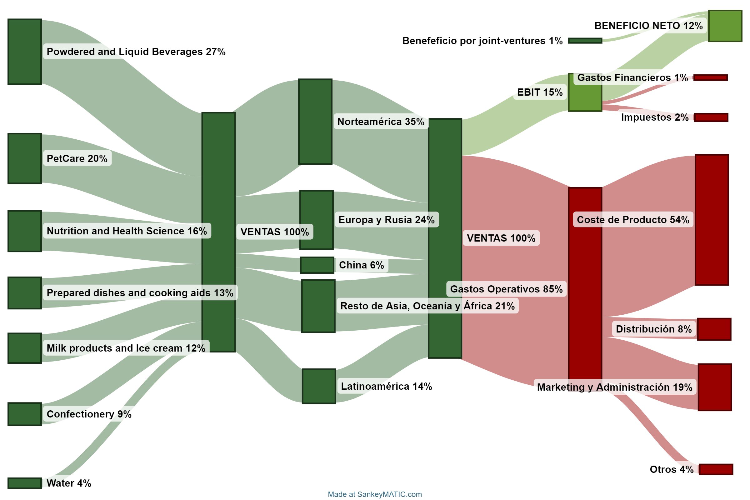 Este es el foco de Nestlé en la actualidad, que como vemos se está alejando de sus productos menos saludables (escindiendo segmentos mediante joint-ventures) y adquiriendo multitud de pequeñas empresas de productos mucho más saludables, y que tienen mejores perspectivas de crecimiento.