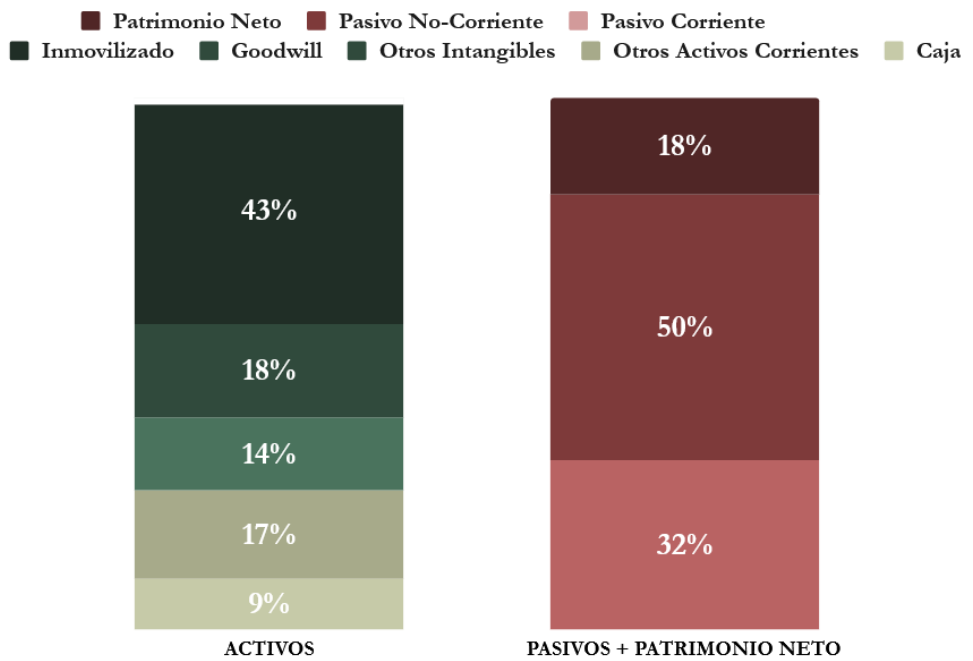 La Autonomía Financiera (patrimonio neto sobre el total de los activos) se sitúa en 18,3% y ha ido reduciéndose en comparación con años anteriores, lo que indica una fuerte dependencia del financiamiento externo. Este nivel ha mostrado una ligera caída en comparación con años anteriores, lo que sugiere que la compañía ha incrementado el apalancamiento para sostener su crecimiento y retorno a los accionistas.