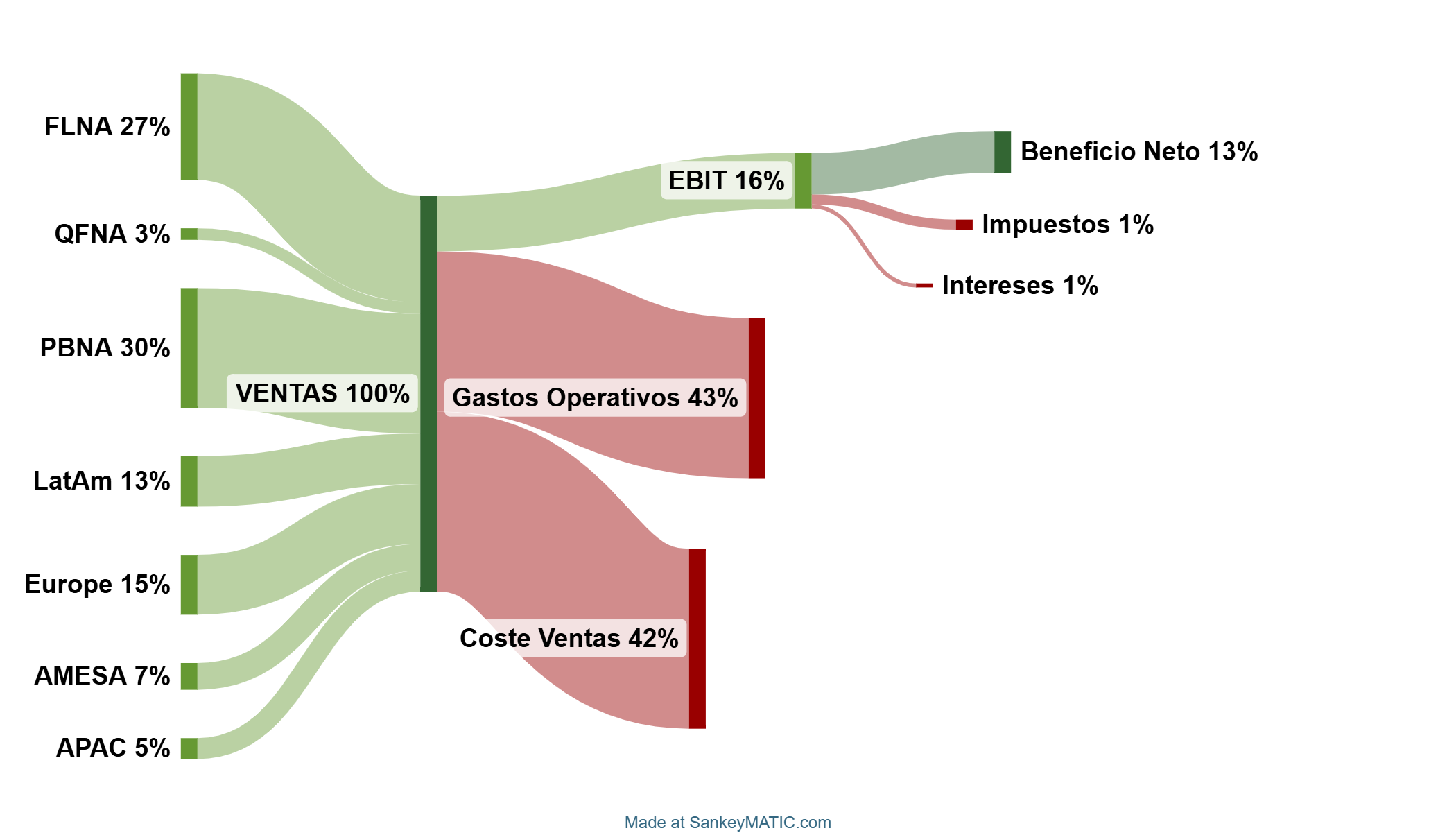 PepsiCo divide su negocio en siete segmentos principales, diferenciados por región geográfica a nivel mundial, mientras que en Norteamérica divide los segmentos por tipo de producto: