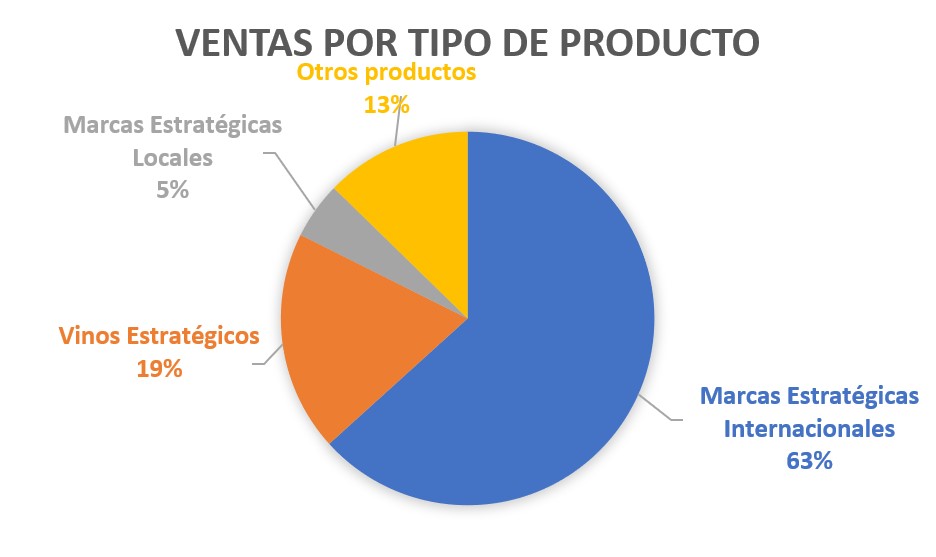 La mayor parte de las Ventas son las de las Marcas Estratégicas Internacionales. Y dentro de este grupo, tres productos estrella se llevan cerca del 25% de las Ventas del grupo: el vodka Absolut y los whiskys Jameson y Ballantine’s.