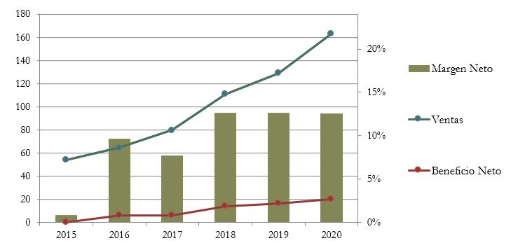 Las Ventas tienen una evolución espectacular, y prácticamente se han triplicado en apenas 5 años. Por mucho que parezca que la crisis sanitaria vaya a impulsar las Ventas de Proeduca Altus, la realidad es que su plan de expansión internacional y la ampliación de las titulaciones ofrecidas estaban ya dando sus frutos antes.