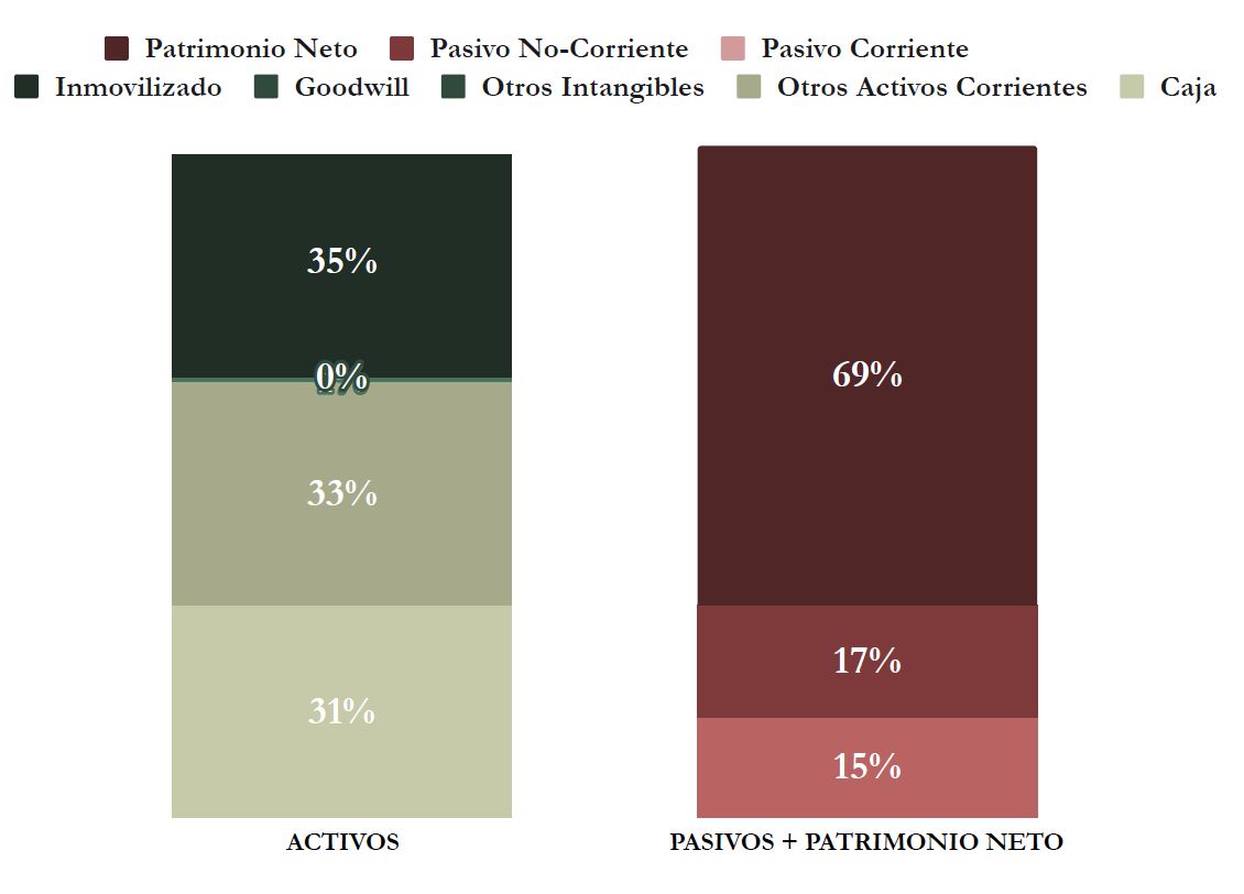 Además, al tratarse de una empresa que no ha realizado adquisiciones de otras empresas de calado en el pasado, el Fondo de Comercio que tiene es del 0%. Por tanto, no hay humo en este balance, que se compone casi únicamente en el largo plazo de propiedades, inversiones y derechos de uso por alquiler de oficinas. Es una empresa tremendamente ligera en capital.