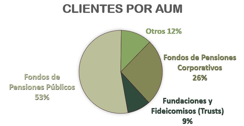Esto se explica porque los pocos clientes antiguos de Record son los que le confían más activos para gestionar (AUM). En su mayoría se trata de fondos de pensiones públicos y corporativos, además de distintas fundaciones y fideicomisos.