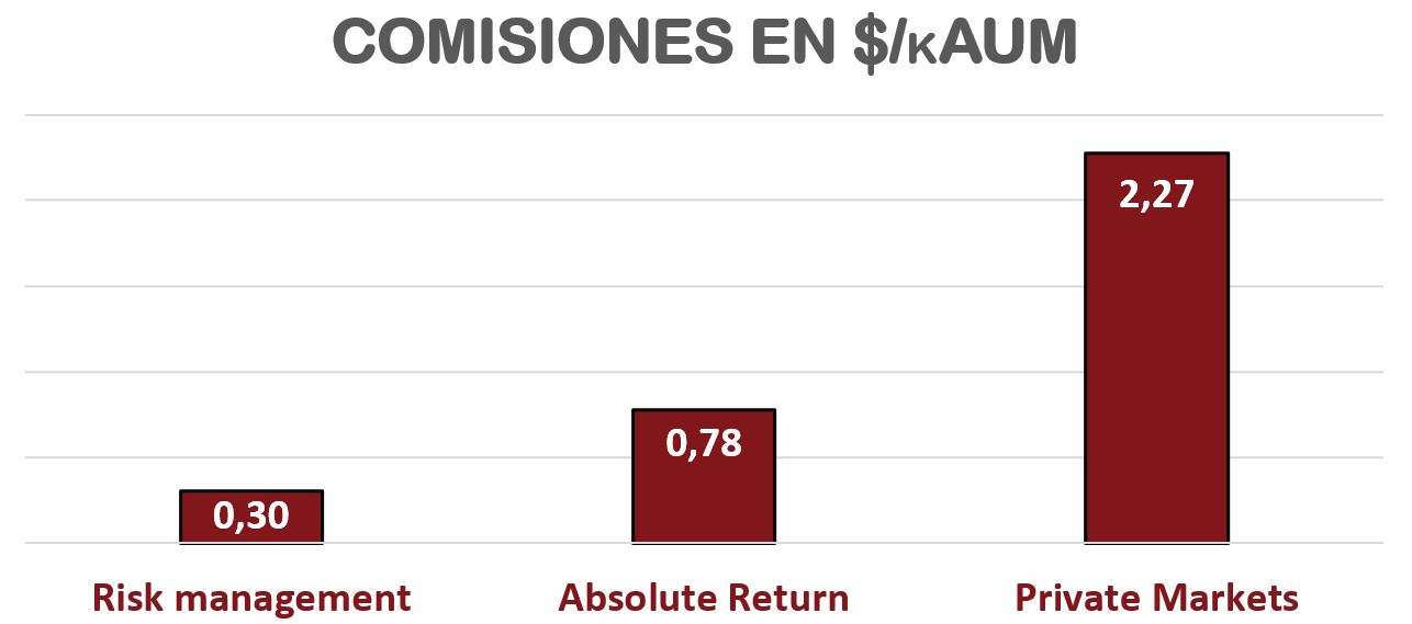 Sin embargo, Record pretende crecer mucho en sus segmentos de Absolute Return (FX Alpha y Custom Opportunities) y sobre todo en Private Markets. Esto es porque la comisión que puede cobrar por estos segmentos es mucho mayor que en el segmento de Risk Management.