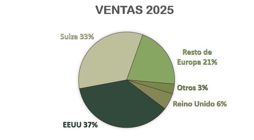 En cuanto a diversificación geográfica, observamos que la procedencia de los ingresos de Record está bastante bien repartida entre los principales centros financieros occidentales: EEUU, Reino Unido y Suiza suponen el 76% de las Ventas de la compañía.