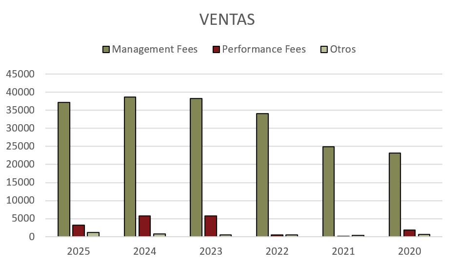 La evolución de las Ventas de Record ha sido muy creciente, especialmente desde 2021, debido en parte al aumento de los activos bajo gestión, pero también a la revalorización post-COVID de los mismos. Sin embargo, este último año las ventas han caído de forma considerable (-8,3%). Veamos con detalle por qué.