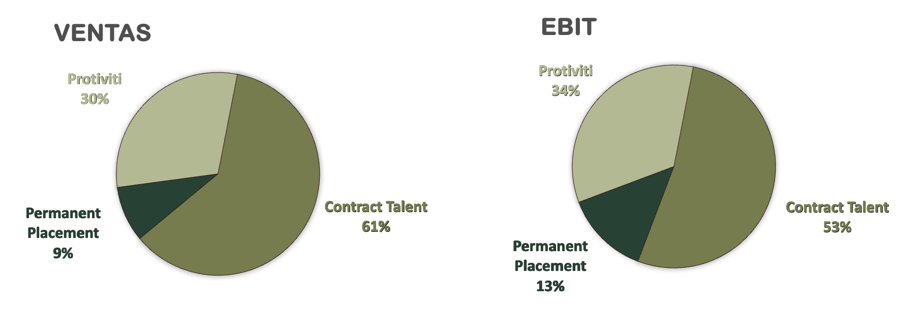 Los márgenes son similares en todos los segmentos, aunque Permanent Placement es el más rentable, en gran parte porque aprovecha a los trabajadores previamente filtrados en Contract Solutions. Sin embargo, cabe destacar que Permanent Placement es el segmento que menos contribuye a las ventas generales.