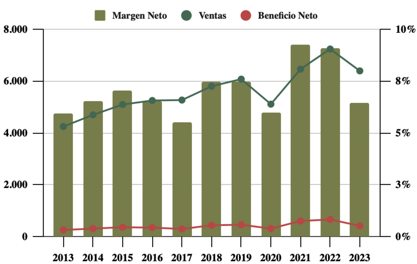 ROE: 26% (Beneficio Neto/Patrimonio Neto)