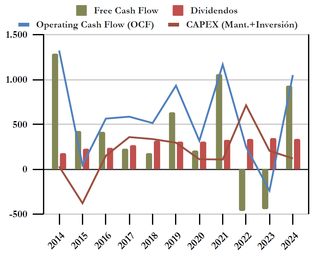 Free Cash Flow considerando el CAPEX de Total (Mantenimiento + Inversión + Otros)