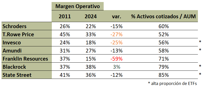 Esta contracción de los márgenes no es una particularidad de Schroders, sino que ha sido una tónica general en el sector de las gestoras de activos. Veamos algunos ejemplos: