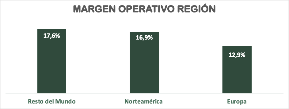 Geográficamente, las Ventas crecen más en los países emergentes en detrimento de Norteamérica (+1%) y Europa (crecimiento negativo), mercados más maduros.