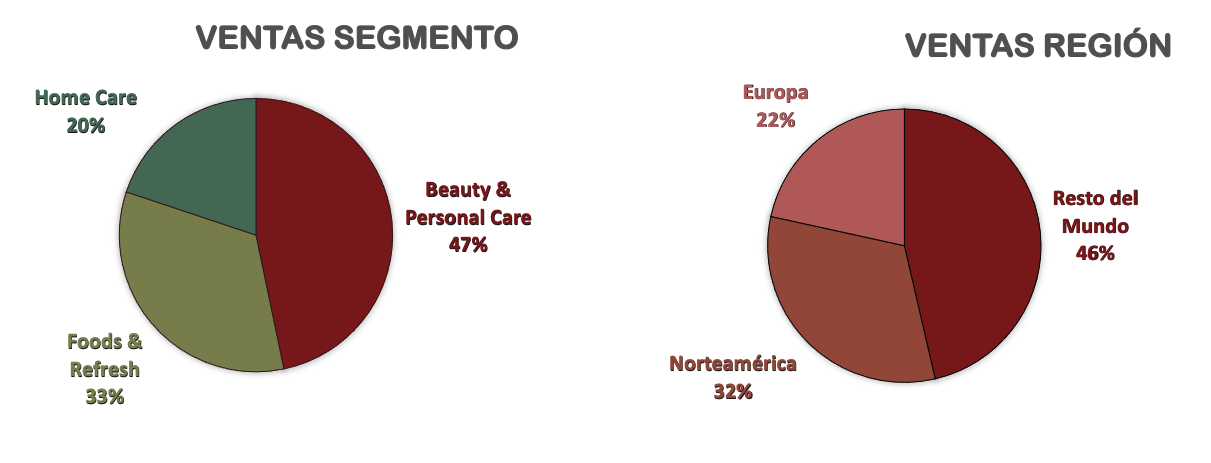 Unilever divide su actividad en tres segmentos, todos ellos pertenecientes a la industria de bienes consumo. Su negocio está muy diversificado tanto en gama de productos como geográficamente, comercializa más de 400 marcas y está presente en casi 200 países.